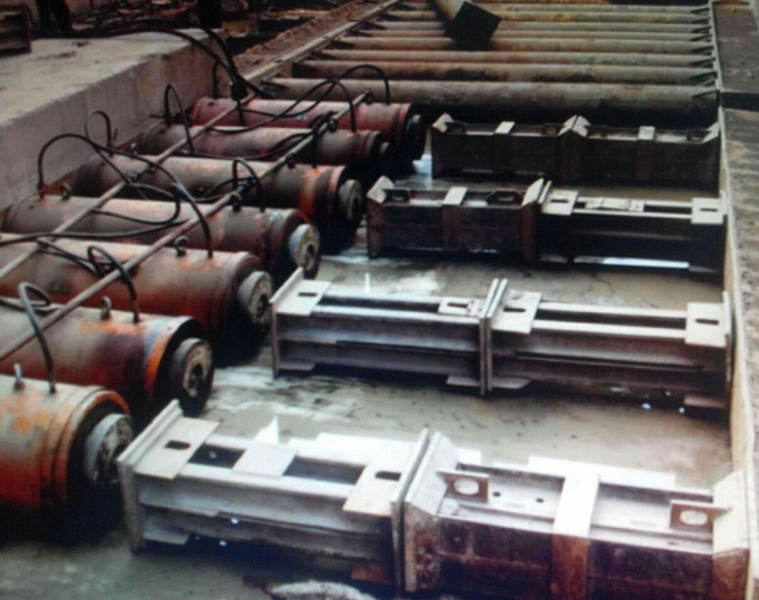 通過中間的小千斤頂?shù)纳靹?dòng)作推動(dòng)外套往前伸出,外套向前推動(dòng)管節(jié)一段距離。